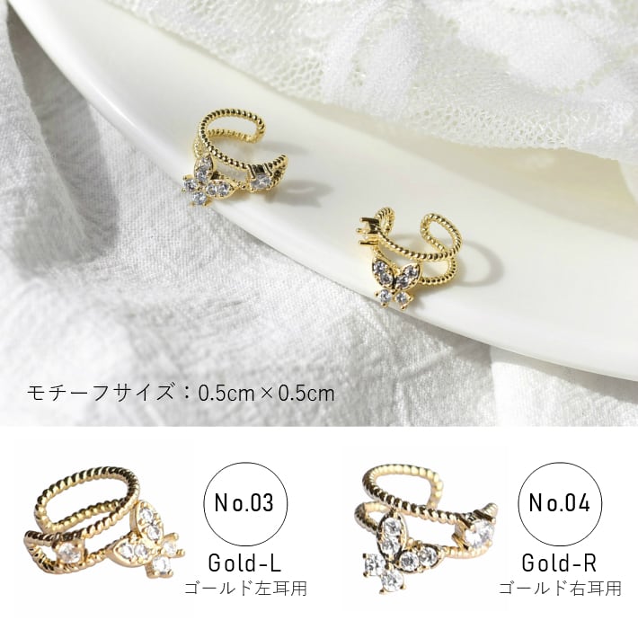 サイズ:01・02<約1.3×0.7cm>、03・04<蝶約0.5×0.5cm、高さ約0.5cm>、05・06・07・08<約1.0×1.0cm>、09・10<約1.0×1.0cm>、11・12・13・14<約0.8×0.8cm>、15・16<約0.5×0.5cm>、17<約0.8×1.5cm>、18<約1.0×2.5cm>